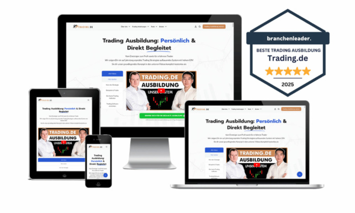 In unserem Vergleich positioniert sich Trading.de als einer der interessantesten Anbieter. Die Plattform wurde bereits mehrfach als beste Trading-Ausbildung ausgezeichnet, was ihre hohe Qualität und die Zufriedenheit der Teilnehmer unterstreicht. Der Kern des Erfolgs liegt im konsequenten Fokus auf persönliches Coaching, das eine individuelle und zielgerichtete Betreuung sicherstellt. Der Lehrgang ist darauf ausgelegt, sowohl Anfängern den Einstieg zu erleichtern als auch fortgeschrittenen Tradern den nächsten Entwicklungsschritt zu ermöglichen.