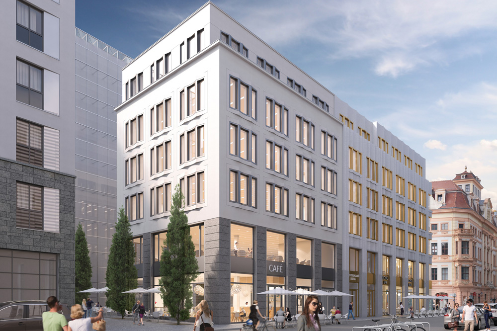 “Seit Bekanntwerden des Projektes erreichten uns Anfragen aus allen Teilen Deutschlands. Uns freut besonders, dass dieser finale Baustein am Museum der Bildenden Künste so gut angenommen wird. Als eine der letzten freien Bauflächen innerhalb der City gibt er dem Platz mit einer Mischung aus Einzelhandel, Wohnen und Büro jetzt endlich sein vollständiges Erscheinungsbild“, betont René Strauß, stellvertretender Niederlassungsleiter der OFB Projektentwicklung GmbH und Bauherr. Entworfen wurde die sechsstöckige Fassade des ca. 25 Millionen Euro teuren Neubaus von klm Architekten aus Leipzig.
