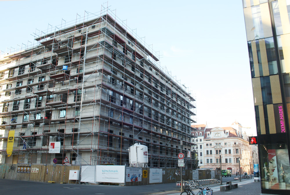 In dieser Woche nun wurde Richtfest gefeiert, denn an der Nordostecke nimmt ein großer Hotelneubau Gestalt an. Die benchmark. REAL Estate Development GmbH hat den Neubau konzipiert. Einziehen werden hier gleich zwei ibis Hotels. Sie verfügen über eine Bruttogeschossfläche von rund 8.800 m² auf sieben Etagen. Die Hotels der Accor Gruppe werden über 125 (ibis) und 169 (ibis budget) Zimmer verfügen. Hinzu kommen 78 Tiefgaragenstellplätze, die von Apcoa gepachtet werden, und eine gut 300 m² große Einzelhandelsfläche. benchmark. hat das Grundstück im Jahr 2012 erworben und seitdem insgesamt über 20 Millionen Euro in das Areal investiert. Damit werde eine Bedarfslücke in der Leipziger Innenstadt geschlossen, wo bisher Hotels im Budgetbereich gefehlt haben. Die beiden Hotels wurden bereits im Juni 2015 von benchmark. an ein Sondervermögen der BNP Paribas Real Estate Investment Management Germany veräußert.