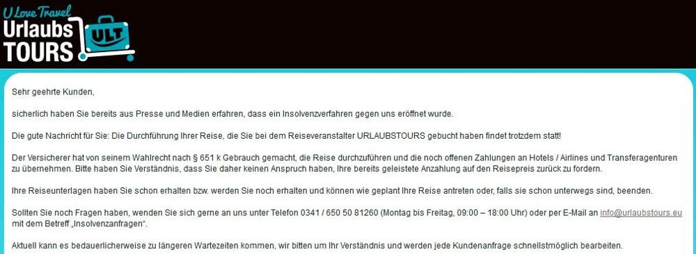 „Buchungen auf Portalen von Unister Travel ab sofort sicher“ lautet die heutige Überschrift in der mittlerweile täglichen Presseinformation der rührigen Kölner Insolvenzkanzlei „Flöther & Wissing“ über eine PR-Agentur. Man habe den laufenden Betrieb insofern wieder herstellen können, als dass nunmehr Unisters Reisesparte nur noch als Vermittler von Leistungen Dritter auftritt. So könnten „Kunden, die ab jetzt bei Unister-Portalen buchen, … sicher sein, dass sie die gebuchte Reiseleistung auch vollständig erhalten“, betonte der vorläufige Insolvenzverwalter Prof. Lucas F. Flöther. „Dies gilt für sämtliche Reiseangebote, neben Flügen und Pauschalreisen auch für Hotels und Mietwagen.“
