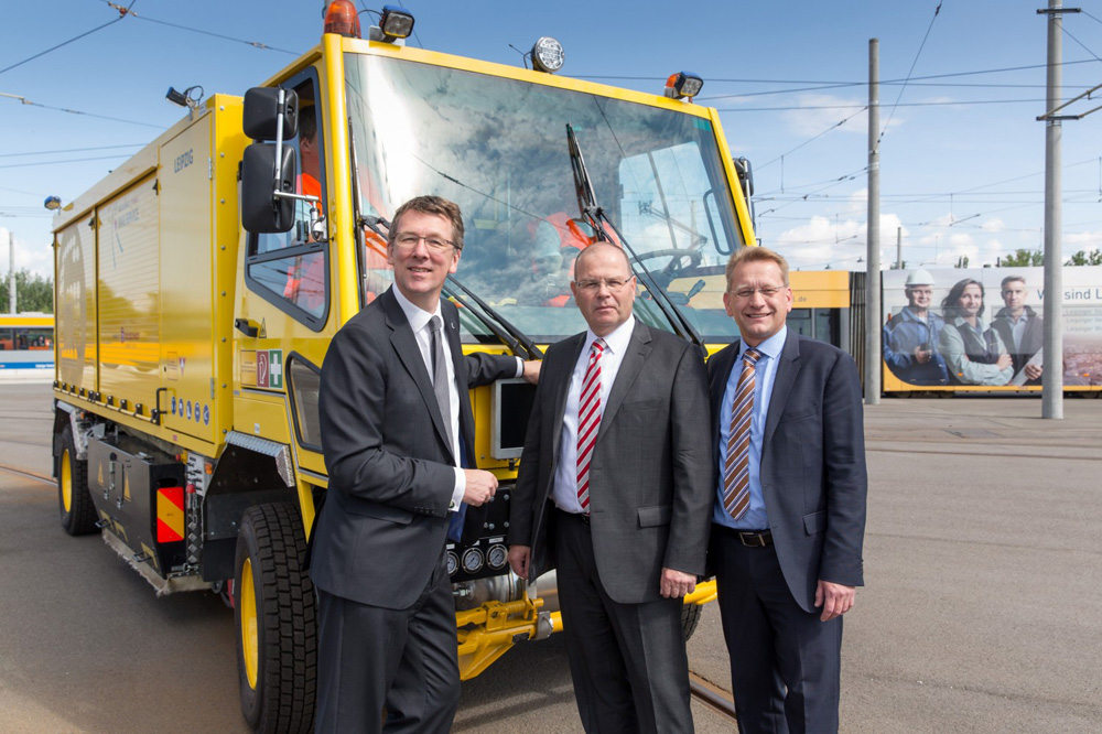 „Die Goldschmidt Thermit Group ist in ihrer Branche ein weltweit führendes und bekanntes Unternehmen. Als Wirtschaftsbürgermeister freut es mich außerordentlich, dass zum einen die Goldschmidt Thermit Group ihrer Vorreiterrolle mit dem Schienenschleiffahrzeug als neues Produkt gerecht wird und sich dem internationalen Wettbewerb stellt und zum anderen mit der Namensgebung ‚Leipzig‘ für den Technologie- und Wirtschaftsstandort Leipzig international wirbt. Ebenso finde ich die Zusammenarbeit mit den Leipziger Verkehrsbetrieben als Beispiel funktionierender Netzwerke im Auftrag der Technologieförderung sehr zielführend“, meinte Uwe Albrecht, Bürgermeister und Beigeordneter für Wirtschaft und Arbeit, beim sommerlichen Termin in Heiterblick.