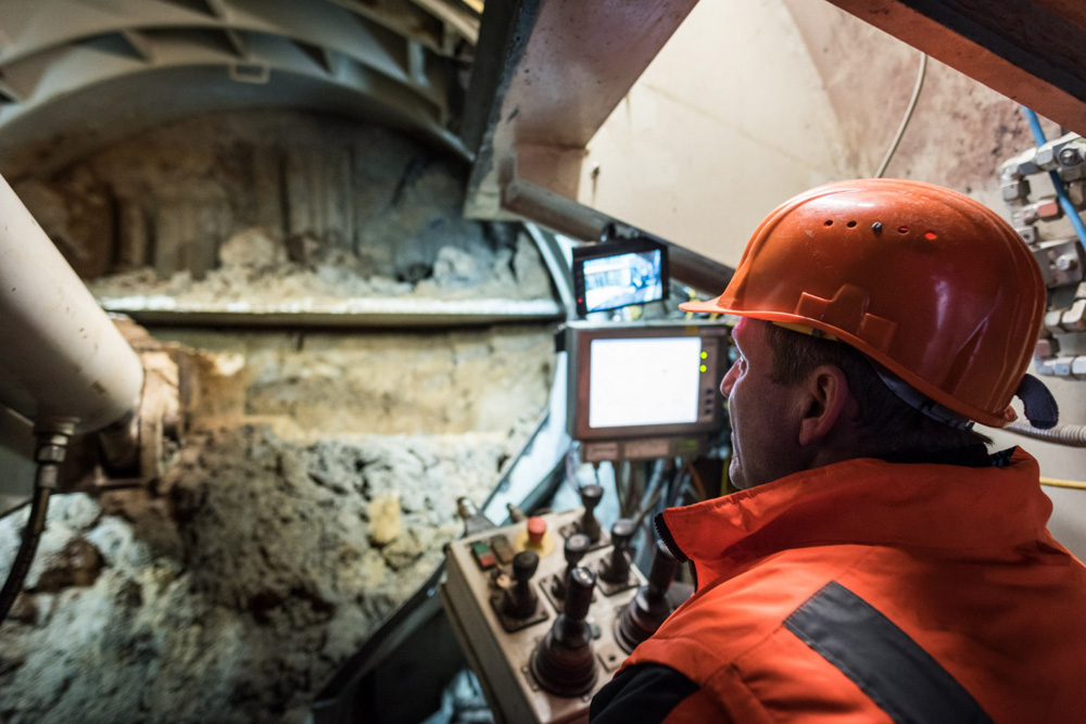 Wie im Bergbau sorgt der Bohrer dafür, dass das abgebaute Erdreich nach dem Fräsen des Bodens über ein Förderband zum Startschacht abtransportiert wird. Pro Tag schafft der Bohrer etwa zehn Meter.