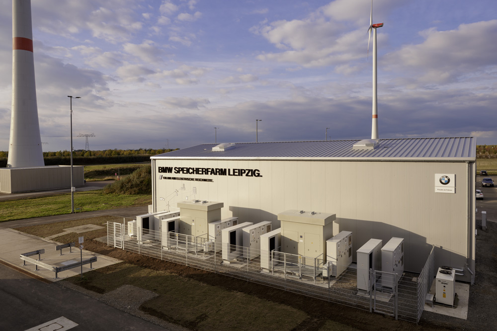 Bei der im BMW Group Werk Leipzig errichteten Speicherfarm handelt es sich um einen Großspeicher, der aus bis zu 700 BMW i3-Batterien – ein Großteil davon in ihrem „second life“ – entstanden ist und derzeit den weltweit größten Speicher dieser Art darstellt. Die Anlage kann Strom – u.a. aus Windenergieanlagen – auf dem Werksgelände zwischenspeichern und so das lokale Energiemanagement optimieren. Jenseits der Werksgrenzen kann die Speicherfarm auch bidirektional Strom als Regelenergie für das öffentliche Netz bereitstellen. Womit die Speicherfarm ein wichtiger Baustein zur Stabilisierung der Stromnetze wird.