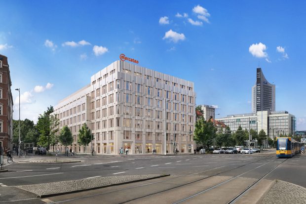 Neben den Leipziger Wasserwerken am Grimmaischen Steinweg wird bis 2023 ein neuer Bürobau entstehen. Die OFB Projektentwicklung GmbH hat den Bauantrag für das hier geplante neue Hauptquartier der Mercateo Gruppe in Leipzig eingereicht. Mercateo ist Betreiber einer B2B Handelsplattform und eines B2B Netzwerks für Geschäftskunden in Europa. Das Unternehmen hat das neue Bürogebäude im Herzen der Stadt für zehn Jahre angemietet.