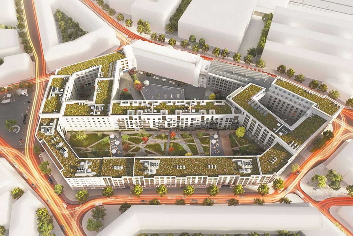 Neben verschiedenen Wohnformen in rund 16.680 Quadratmetern mit 236 Einheiten und rund 11.200 Quadratmetern für Büro gehören auch ein Hotel der Marke „me and all“ mit 282 Zimmern sowie Flächen für Einzelhandel und Kleingewerbe zum Neubaukomplex.