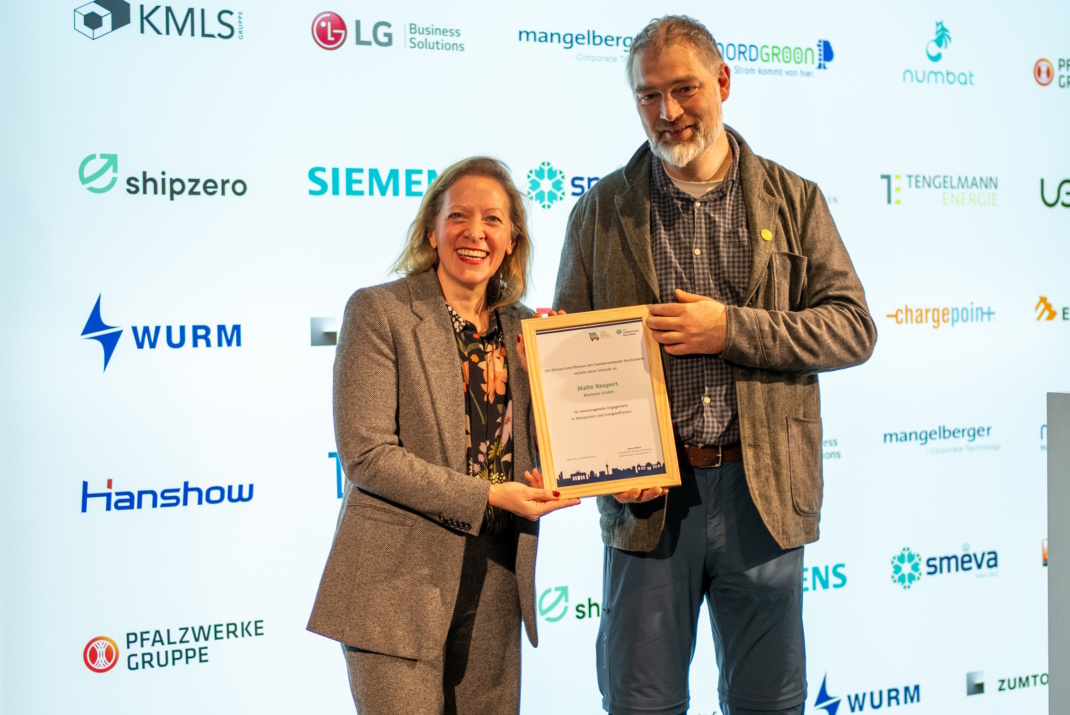Malte Reupert, Geschäftsführer und Inhaber von insgesamt drei Biomare-Märkten in Leipzig, sicherte sich als Lebensmittelhändler die Auszeichnung. Der Kaufmann zeigt seit vielen Jahren mit Engagement, wie wichtig ihm echter Klimaschutz ist.