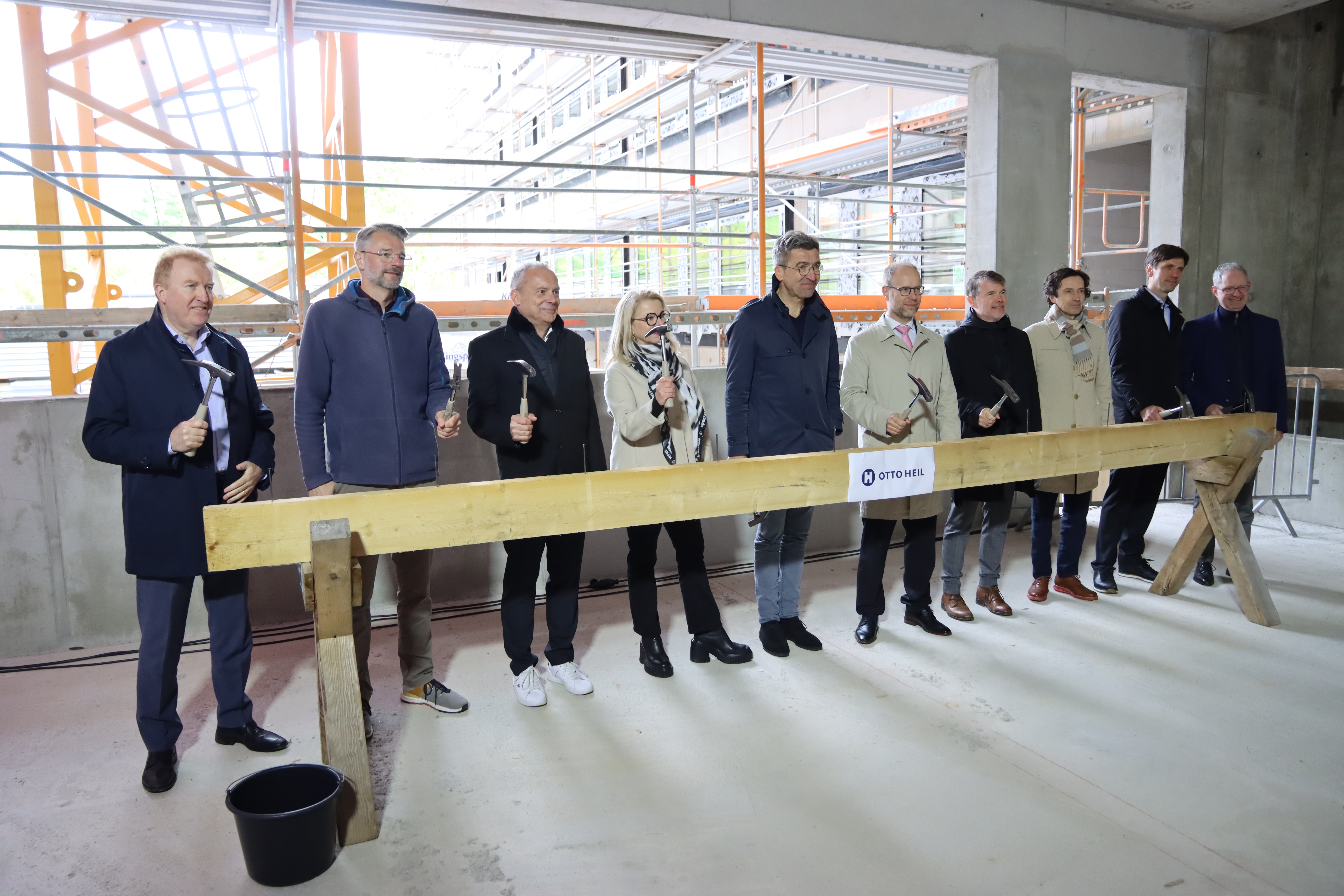 Gemeinsam mit dem Bürgermeister und Beigeordneten für Wirtschaft, Arbeit und Digitales Clemens Schülke, Baubürgermeister Thomas Dienberg sowie zahlreichen Projektbeteiligten aus Kommunalpolitik, Verwaltung und Wirtschaft konnte am Mittwoch das Richtfest für den ersten Bauabschnitt des vielseitigen Büroensembles an der Alte Messe 1a in Leipzig gefeiert werden.