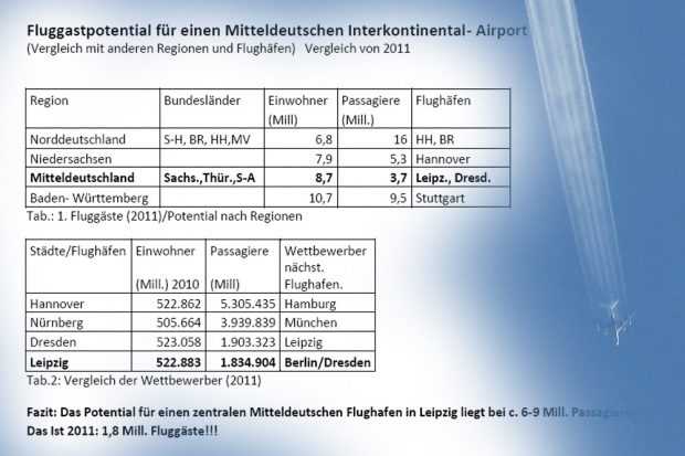 Und Weickert tut etwas, was augenscheinlich die Flughafenverantwortlichen seit zehn Jahren nicht mehr tun: Er schaut sich das Fluggastpotenzial für Leipzig als Mitteldeutscher Zentralairport an: Das wären 7 bis 9 Millionen Passagiere gewesen. Wenn man einige der größten Fehler nicht gemacht hätte. Einer war ja auch die Rieseninvestition gleich in zwei Großflughäfen – Leipzig und Dresden. Einer jagt dem anderen die Fluggäste ab. Aber keiner kann sich wirklich zum maßgeblichen Flughafen in Mitteldeutschland entwickelt.