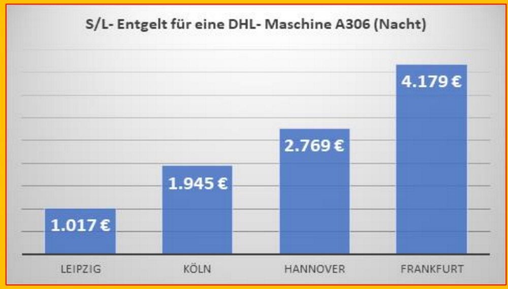 Der Grund für die Diskrepanz: Die Start/Lande-Gebühren in Hannover liegen teilweise 175 % über denen von Leipzig. Logisch, dass die Bürgerinitiative eine zeitnahe und deutliche Erhöhung der S/L-Entgelte am Flughafen Leipzig/Halle unter anderem durch die Einführung von Nacht-, Lärm,- und Emissionsentgeltzuschlägen fordert. Und außerdem einen rückwirkenden Ausgleich der Flughafen-Verluste aus den Milliardengewinnen von DHL-Express.