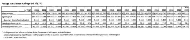 Einen deutlich größeren Zeitraum fragte nun freilich Marco Böhme ab – nämlich die kompletten Gewinne/Verluste von 2000 bis 2020. Und Hartmut Vorjohann hat ihm die Zahlen geliefert. Und in keinem einzigen Jahr hat der Flughafen Gewinne gemacht seitdem. Sondern – aufsummiert – über 800 Millionen Euro Verlust.
