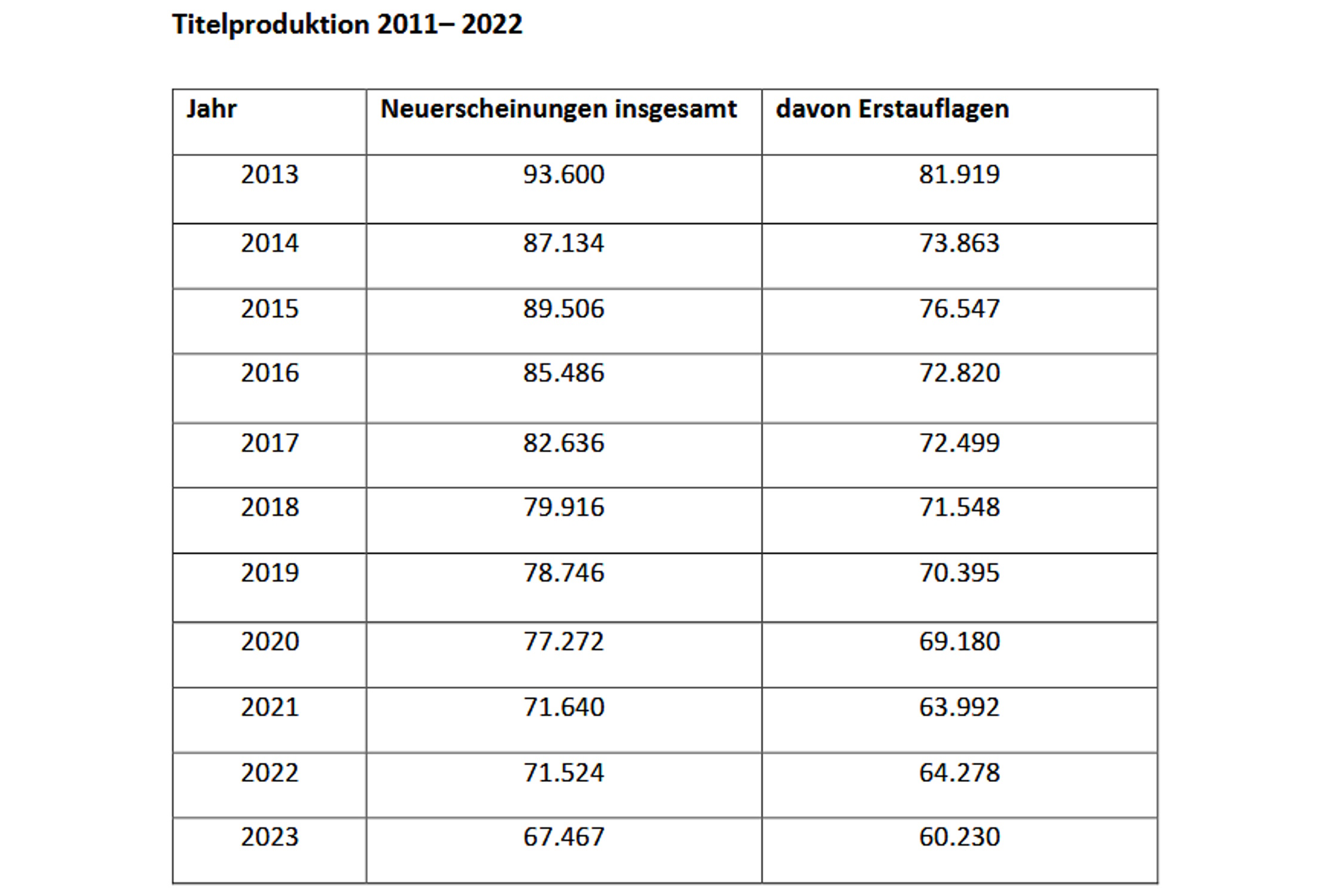 Der dann eben auch feststellen muss, dass die Zahl der in Deutschland verlegten Titel seit 2013 permanent zurückgeht – von damals 93.600 auf nur noch 67.467 im Jahr 2023. Ein scheinbar unaufhaltbarer Trend, der auch an den mitteldeutschen Verlagen nicht vorbeigeht.