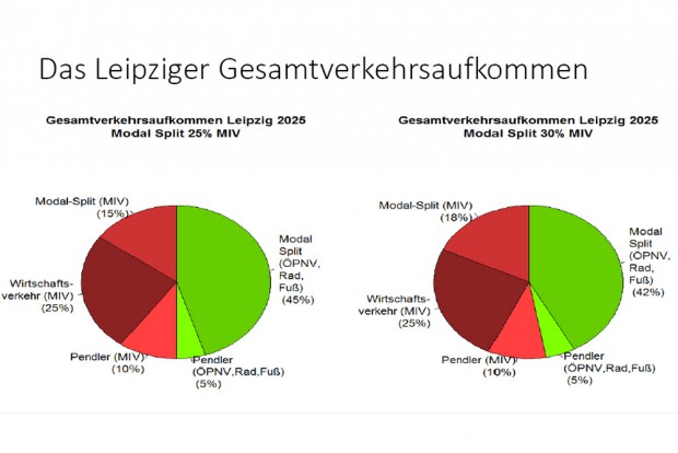 Und er hat noch 15 Prozent Pendlerverkehr mit in die Grafik aufgenommen, auch das eine Größe, an der Leipzig selbst wenig ändern kann – die aber auch nicht nur aus Autofahrern bestehen, sondern auch aus vielen Zug-Pendlern.