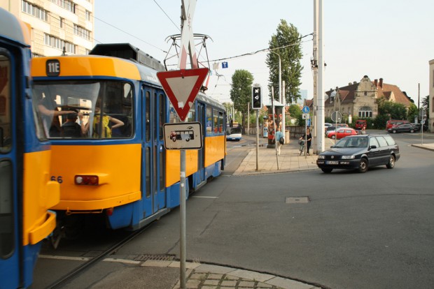 Großer Vorteil wäre, dass der Radverkehr erstmals am Liebknechtplatz auf der richtigen Seite ankommt und nicht kompliziert über die Gleise eiern muss, um zum Radweg zu gelangen – der ist nämlich nicht vor dem Finanzamt sondern auf der anderen Seite der Straßenbahnhaltestelle.
