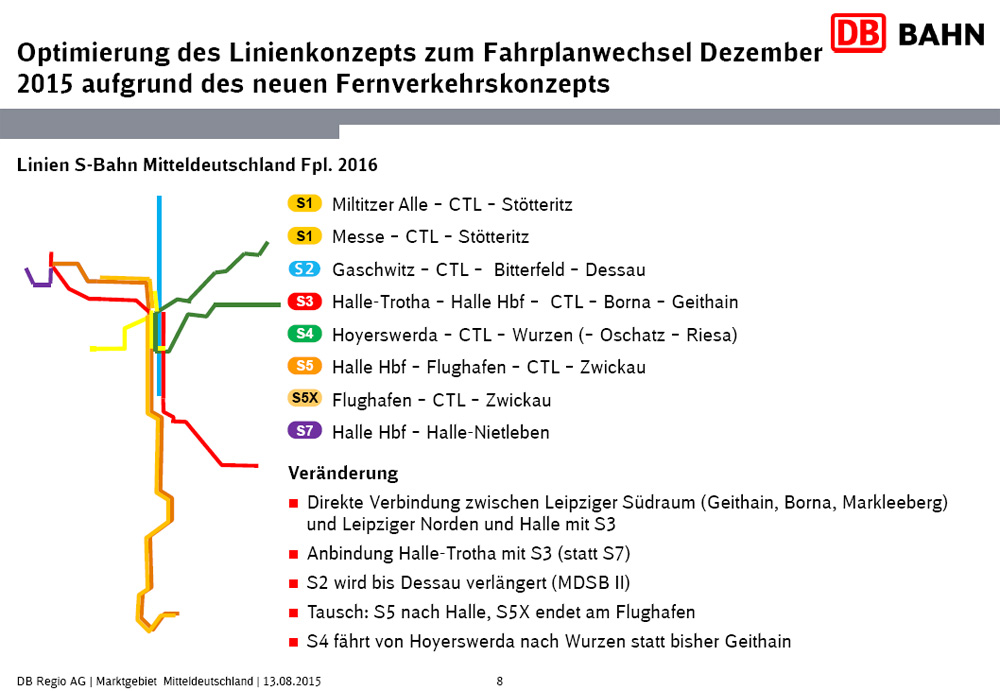 – Verlängert wird die S2 Gaschwitz–Leipzig Hbf. (tief)–Bitterfeld bis Dessau.