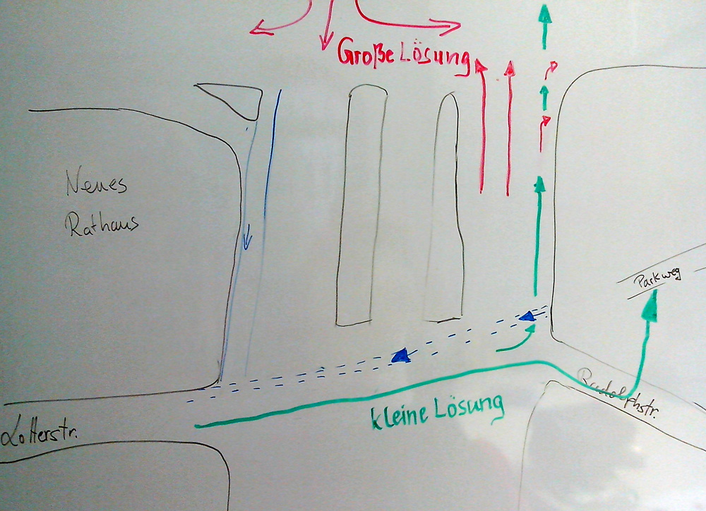 “Als Radfahrerin aus der Lotterstraße kommend und links in Richtung Bundesverwaltungsgericht wollend, werde ich auf der westlichen Seite des Promenadenringes auf Höhe Rudolphstraße legal mit neun! verschiedenen Gruppen konfrontiert, die alle durch unklare Führungen verunsichert sind und dem zur Folge irritiert (aggressiv) miteinander umgehen: