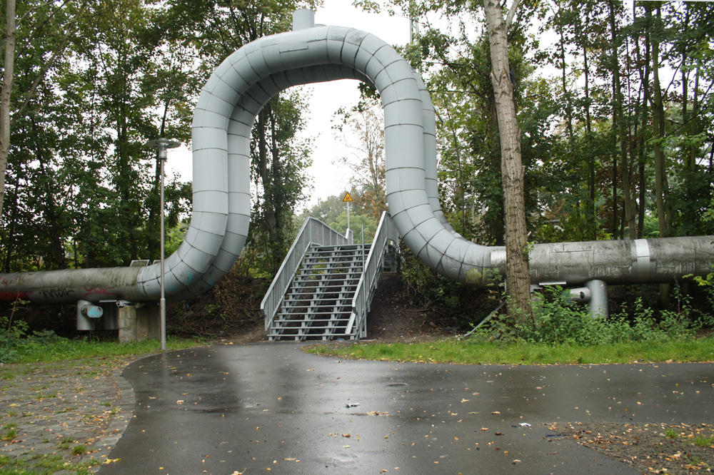 Tatsächlich hat man zwei neue Wegeverbindungen von diesem 2014 fertiggestellten Teilstück des Radweges gebaut, die jetzt zu einem weiteren Treppenaufgang zum Bahnsteig führen. Drei Abstellbügel stehen da, an die man sein Fahrrad anketten kann, wenn man sich traut. Aber das wird eher wenigen Zeitgenossen einfallen, denn die Ecke liegt so hübsch abgelegen, dass sich hier allerlei trinkfreudige Zeitgenossen treffen, die sich einen Spaß daraus machen, die leeren Flaschen auf dem Asphalt zu zerschmeißen.