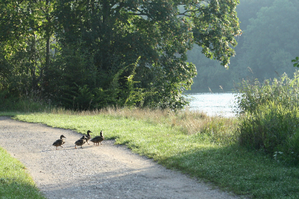 Oder Naturbad-Nordost, wie es im amtlichen Sprachgebrauch heißt. Natürlich ist in dieser Morgenstunde vom kürzlichen Fund zweier Leichen nichts mehr zu sehen. Tatort war der beliebte Bagger sowieso nicht, hat die Polizei mitgeteilt. Friedlich liegt das Wasser. So, wie man es sich wünscht von einem alten Baggersee, der zum beliebtesten Badeort im Leipziger Nordosten geworden ist. Sogar die Enten nehmen hier die Verkehrsregeln ernst und kehren bei Sichtung eines Radfahrers sofort wieder um und watscheln zum Wasser, um gleich wieder umzukehren, wenn der Radfahrer gar nicht hier lang will, sondern nur kurz diese schöne Stille einzufangen versucht.