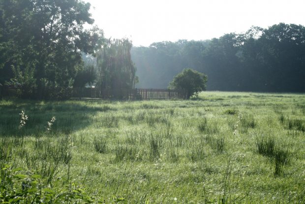 Aufpassen muss man trotzdem: Die Straße, die eher wie eine stille Landstraße aussieht, wird eifrig von Autofahrern genutzt. Deswegen stellt man sich hübsch an den Straßenrand, um über ein wasser- und wiesenreiches Gelände zu schauen, das ahnen lässt, wie große Teile der Parthenaue einmal ausgesehen haben, bevor die Menschen kamen und Straßen und Brücken und Kanäle bauten. So ungefähr kann die Parthenaue auch mal direkt vor dem alten Leipzig ausgesehen haben.