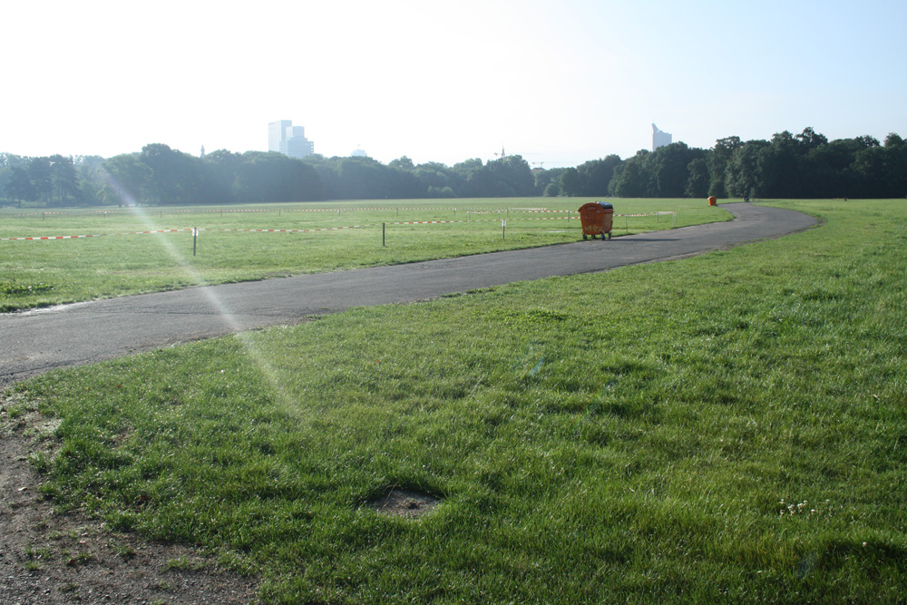 Man wird also zur Großen Wiese geschickt. Da hat man die Wahl. Man kann ostwärts drumherum fahren und am Zooschaufenster Ausschau nach Zebras und Giraffen halten. Oder man wählt die Westroute um die Wiese – da hat man direkten Anschluss zum Waldstraßenviertel. Für Leipzig-Besucher natürlich ein Muss.