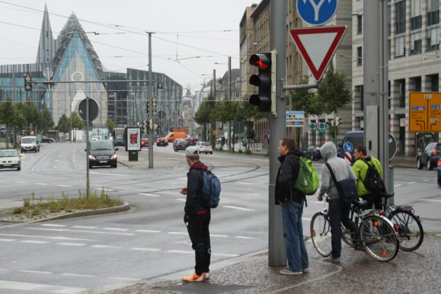 Man merkt, es klingt auch ein bisschen Frust über die Leipziger Ampelphasen an, die nicht unbedingt immer radfahrer- und fußgängerfreundlich sind. Man wird oft genug ausgebremst, weil andere Verkehrsarten dominieren. Und dann steht man da – oft genug auf einem viel zu schmalen Streifen, der das Warten selbst gefährlich macht.