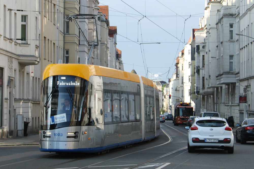 Gesehen wurde das neue Fahrzeug im Leipziger Netz natürlich schon öfter. Gerade in den vergangenen sechs Wochen war es vor allem zur Fahrerausbildung unterwegs. Denn wenn der XL jetzt in den Linienbetrieb geht, müssen natürlich möglichst alle Fahrer auch darauf vorbereitet sein, dass sie mit der neuen Niederflurbahn fahren müssen. Die Fahrerausbildung gehörte freilich auch noch zur Inbetriebnahmephase. Denn ob das Fahrzeug wirklich auch bei jedem Fahrertemperament ohne Probleme rollt, bekommt man nur heraus, wenn auch die Profis damit unterwegs sind und auch aus eigener Erfahrung mitkriegen, ob unterwegs noch bestimmte Dinge haken.