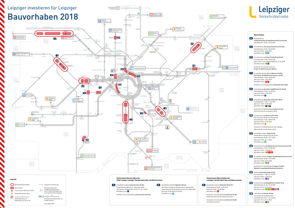 „Damit setzt das Unternehmen seine Investitionen in die Leistungsfähigkeit des Straßenbahnnetzes fort, um den steigenden Fahrgastzahlen Rechnung zu tragen. Die Verkehrsbetriebe nutzen die gute Fördermittelsituation und investieren auch 2018 in den grundhaften Ausbau des Netzes, ergänzt durch Maßnahmen der Instandhaltung und Prävention“, heißt es weiter.