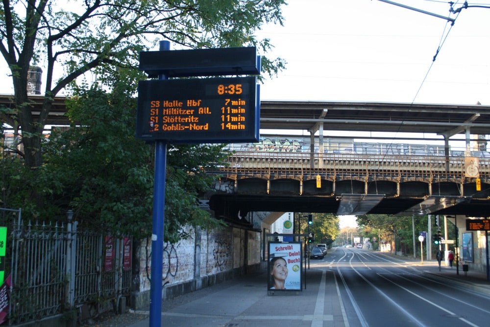 „In der Tat testen die Leipziger Verkehrsbetriebe derzeit am S-Bahnhof Gohlis und am S-Bahnhof Lindenau die Anzeige der S-Bahn-Abfahrten auf den sogenannten Dynamischen Fahrgastinformationsanzeigen (DFI’s)“, bestätigt uns auf Nachfrage LVB-Pressesprecher Marc Backhaus. „Zur besseren Kundeninformation nutzen wir dafür die zentrale Datendrehscheibe des Mitteldeutschen Verkehrsverbundes.“