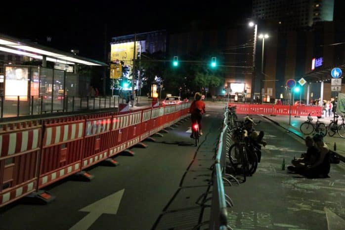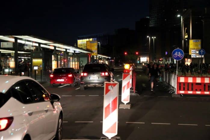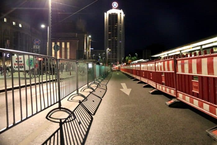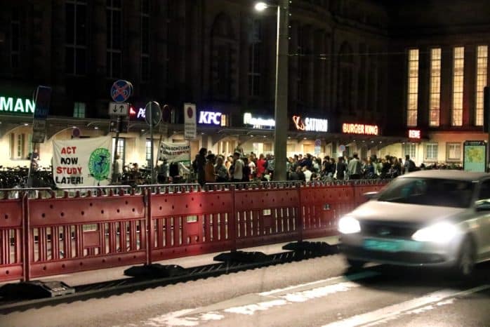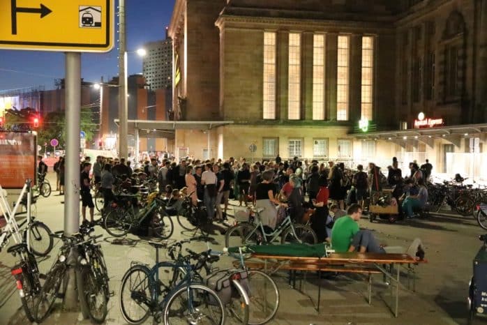 Ob die um zirka 22:30 Uhr auf dem Ring vorbeihupenden Autos nun Zustimmung oder Ablehnung signalisieren sollen, bleibt offen. Gegenüber der Zentralhaltestelle der LVB, direkt auf dem Bahnhofsvorplatz, musiziert und singt es, wo sonst die Taxen warten. Unterdessen fehlen den Autofahrern ab sofort am Hauptbahnhof für 48 Stunden zwei Fahrspuren, aus vier wurden zwei, eine Radspur ist entstanden. Die Taxen warten derzeit auf dem Kurzzeitparkplatz an der Westseite des Hauptbahnhofes. Und eine aktuelle Gerichtsentscheidung vom Freitag sagt: am Sonntag sind drei Stunden lang alle vier Spuren für die Autos weg.