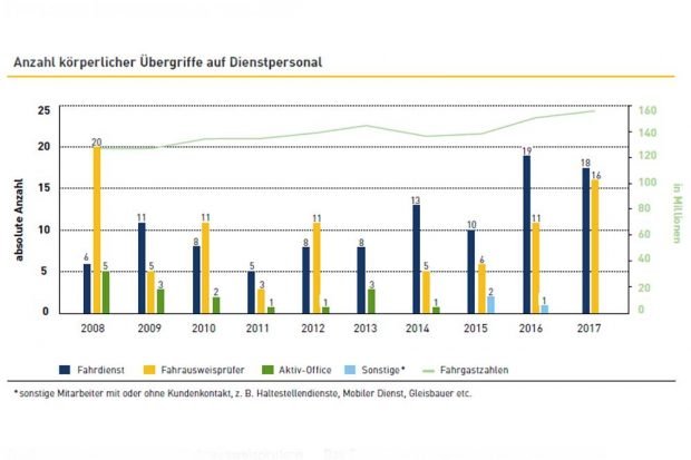 Unübersehbar ist, dass aggressives Verhalten gegen die Fahrer und Fahrerinnen von 5 Vorfällen im Jahr 2011 auf 19 im Jahr 2016 und 18 im Jahr 2017 deutlich zugenommen hat.