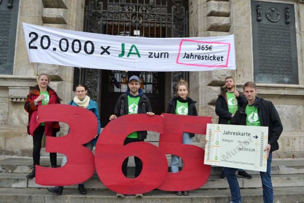 Auf www.oekoloewe.de/365euroticket können Leipzigerinnen und Leipziger den Appell zur Einführung des günstigen 365-Euro-Jahrestickets in Leipzig weiterhin unterschreiben.