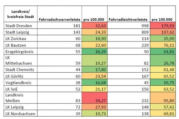 Und dabei liegt Leipzig im Sachsenvergleich sogar noch recht gut. Selbst in der Landeshauptstadt gibt es mehr Radfahrerunfälle mit entsprechenden Personenschaden.