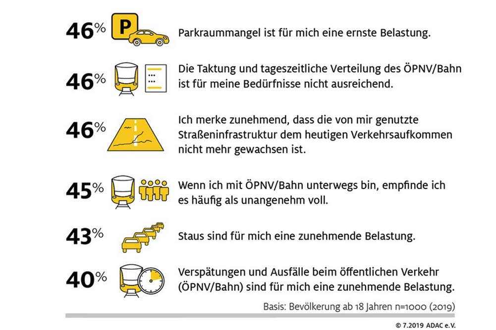 Was die Befragten im Verkehr als belastend empfinden. Grafik: ADAC