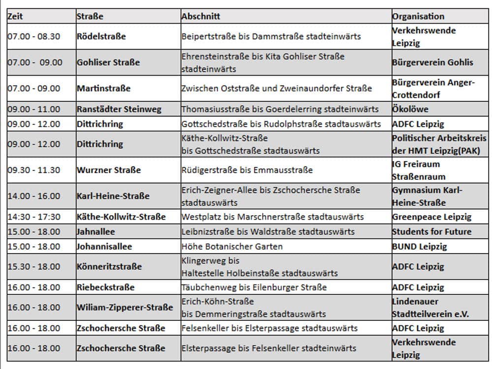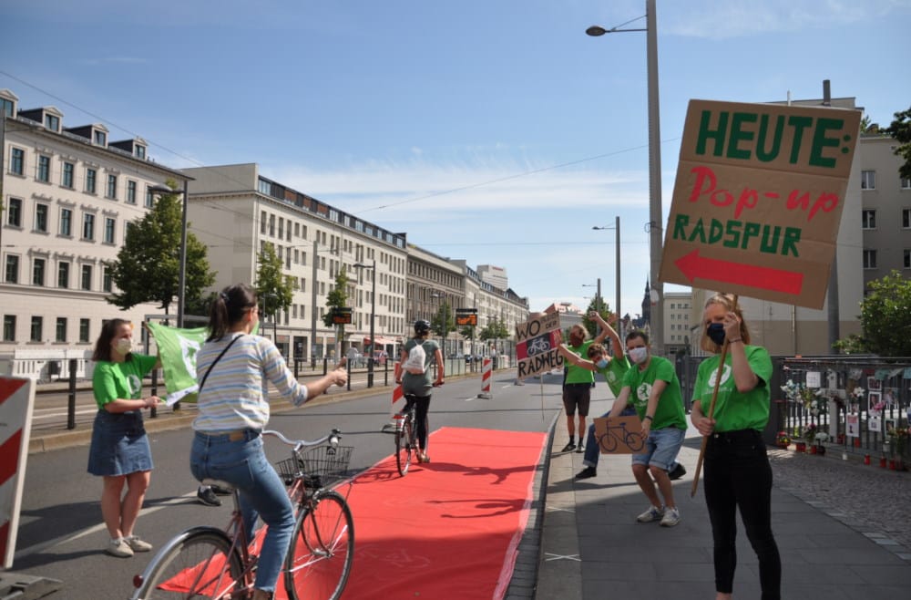 Zu dem haben sich wieder viele Leipziger Verbände und Initiativen zusammengeschlossen und bieten den Leipzigerinnen und Leipzigern an diesem Tag wieder eigenhändig sichere Pop-up-Radwege an. Zu den Initiatoren gehören der ADFC und der Ökolöwe.Tino Supplies, verkehrspolitischer Sprecher der Ökolöwen, erklärt zum Hintergrund des Aktionstags: „Das Leipziger Radnetz ist aktuell noch mehr Lücke als Netz. Besonders auf vielen Hauptstraßen hören Radwege plötzlich einfach auf. Es braucht hier deutlich mehr Tempo bei der Markierung neuer Radwege. Das muss alles viel schneller gehen. Mit Pop-up-Radwegen kommen Leipzigs Radlerinnen und die Verkehrswende besser voran. Mit dem Aktionstag und einer Petition an den Stadtrat wollen wir gemeinsam erreichen, dass das Verkehrsamt seine Blockadehaltung aufgibt.“