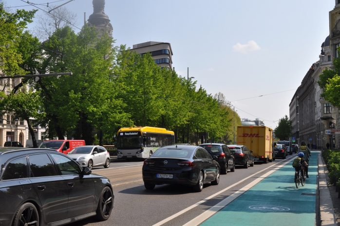 „Die aktuell längeren Rückstaus auf dem Dittrichring stehen zum einen auch mit den Einschränkungen durch die Markierungsarbeiten und der durch eine Gleisbaumaßnahme bedingten Sperrung der Käthe-Kollwitz-Straße im Zusammenhang“, erklärt das Verkehrs- und Tiefbauamt hierzu. (Hier alle Straßenbelegungen mit Pkw laut Stadt Leipzig 2020/21 / PDF)