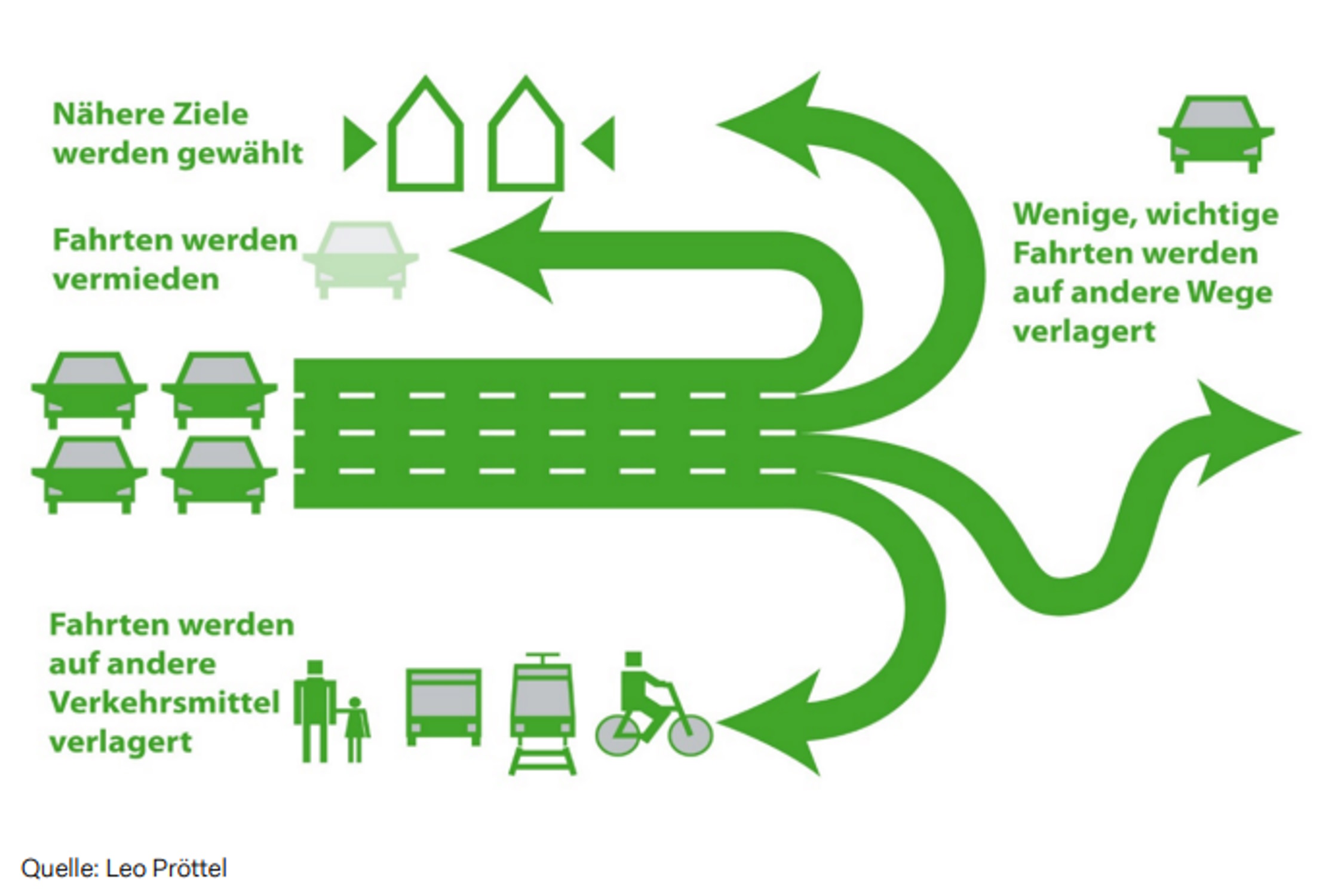 In einer Passage der Studie heißt es dazu z. B.: „Der Effekt erklärt sich durch ein verändertes Verkehrsverhalten: Je attraktiver Fuß- und Radwege sind, desto häufiger nutzen Menschen sie. Ursächlich für den Effekt sind neben einer veränderten Verkehrsmittelwahl aber sicherlich auch noch weitere Anpassungsstrategien: Es werden andere Ziele gewählt, weniger wichtige Fahrten unterlassen oder andere Routen befahren.
