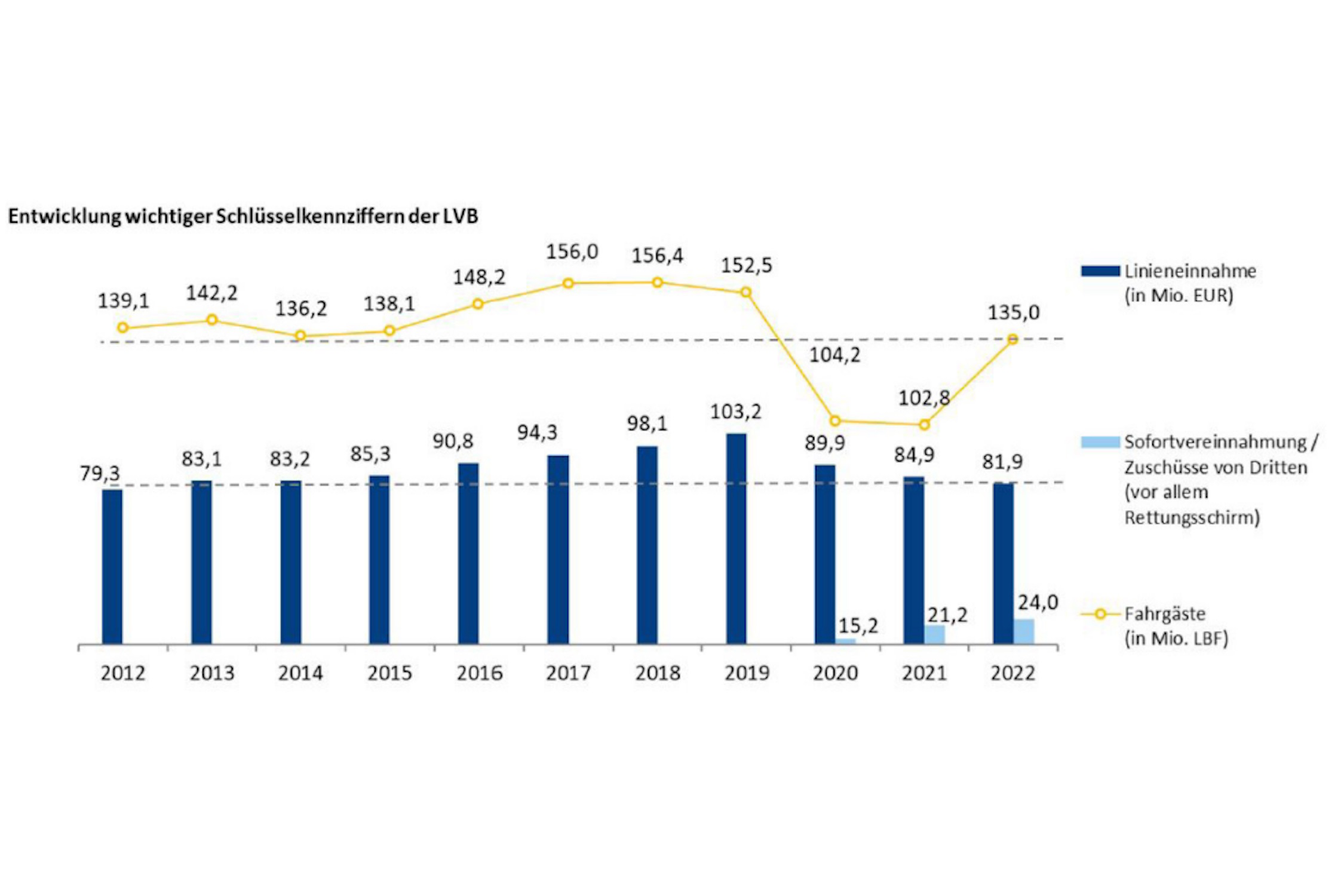 2022 gab es einen zusätzlichen Einbruch von 84,9 auf 81,9 Millionen Euro, der auch nach Einschätzung des Jahresabschlusses direkt mit dem 9-Euro-Ticket zu tun hat, das im Sommer 2022 für drei Monate galt. Der Bericht stellt eindeutig fest, dass die dafür an die LVB geflossenen Ausgleichszahlungen nicht gereicht haben, um die Finanzierungslücke zu schließen. Das Ticket wurde zwar sehr gut angenommen, senkte aber auch die Abo-Einnahmen, denn auch bei den Abo-Kunden wurden in diesen drei Monaten nur jeweils 9 Euro abgebucht.