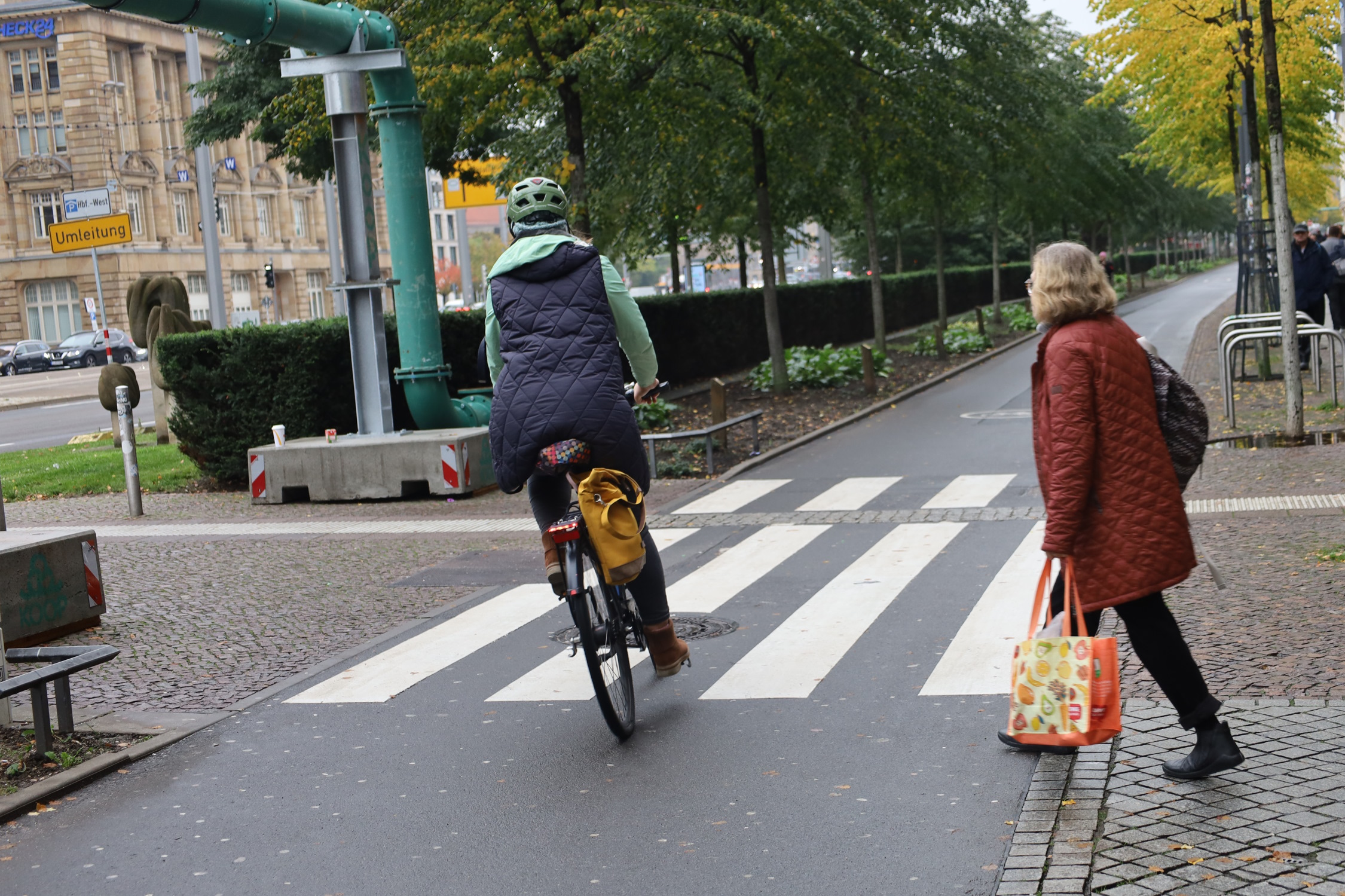 Die neuen Fußgängerüberwege sind Teil der Neuorganisation des Verkehrs zwischen Hauptbahnhof und Löhrstraße, wobei der Promenadenring in diesem Abschnitt erstmals für den Radverkehr freigegeben wird, teilt das Verkehrs- und Tiefbauamt (VTA) mit. Der neue Radstreifen wird in diesem Abschnitt schon rege genutzt.