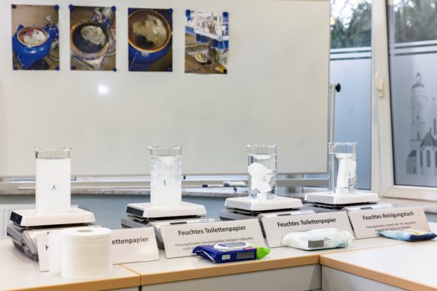 „Wir möchten niemandem verbieten, diese Tücher zu benutzen. Aber in die Toilette gehören ausschließlich Wasser, Toilettenpapier und menschliche Ausscheidungen“, sagt Kanalexperte Fieberg. Im Live-Test kann er zeigen, wie sich normales Toilettenpapier im Rührgerät schnell im Wasser auflöst. Die Feuchttücher bleiben – in unterschiedlicher Stärke – stückweise erhalten.