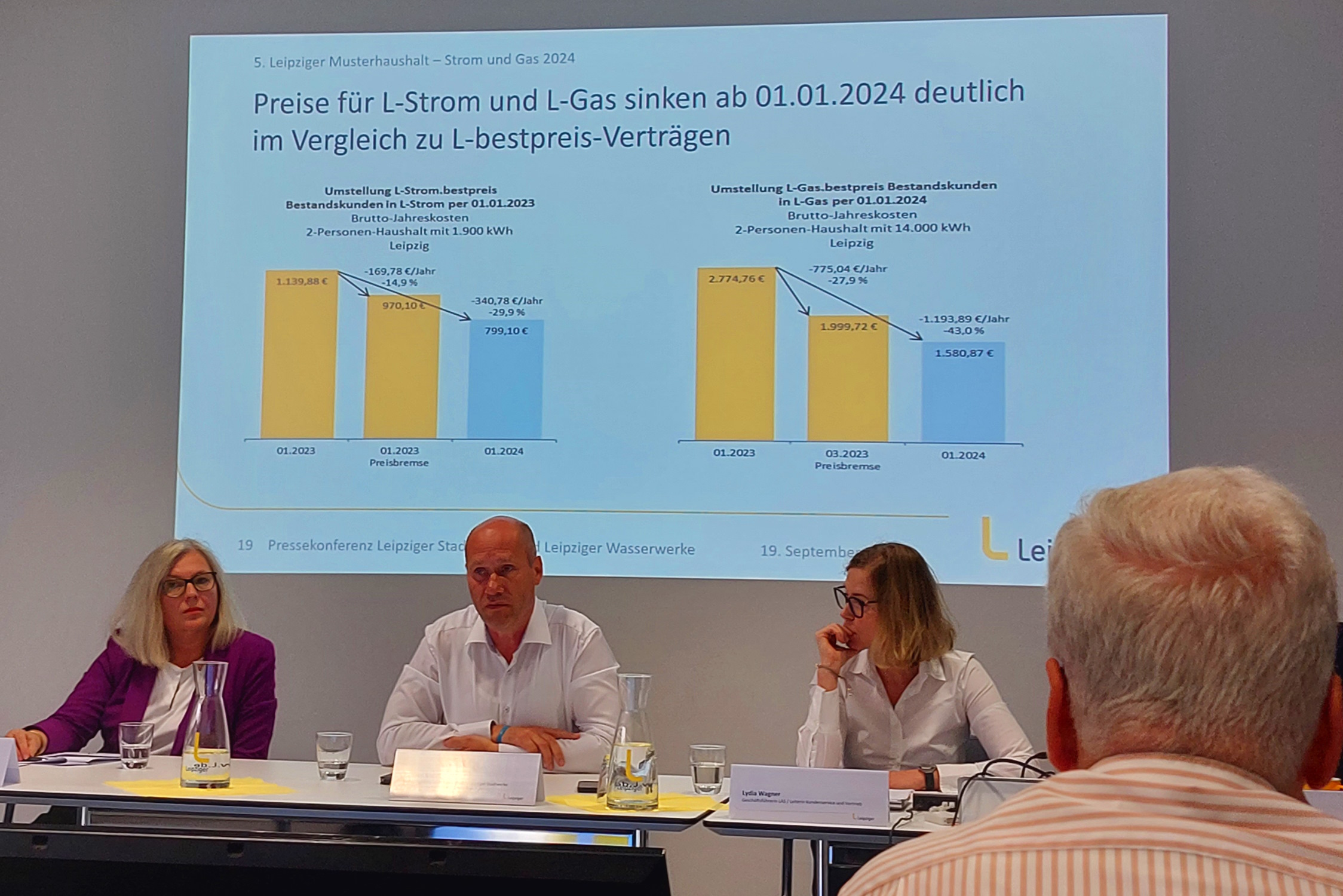 Die Leipziger Stadtwerke und die Leipziger Wasserwerke passen ab 1. Januar 2024 ihre Preise an. Dies gaben beide Unternehmen der Leipziger Gruppe am Dienstag, dem 19. September, auf einer gemeinsamen Pressekonferenz bekannt. Insbesondere für Stromkunden gibt es ab 1. Januar endlich wieder ein bisschen Entspannung bei den Kosten. Denn im Großhandel sind die Strompreise mittlerweile gesunken – wenn auch noch nicht wieder auf das Niveau vor Beginn des russischen Angriffskrieges gegen die Ukraine.