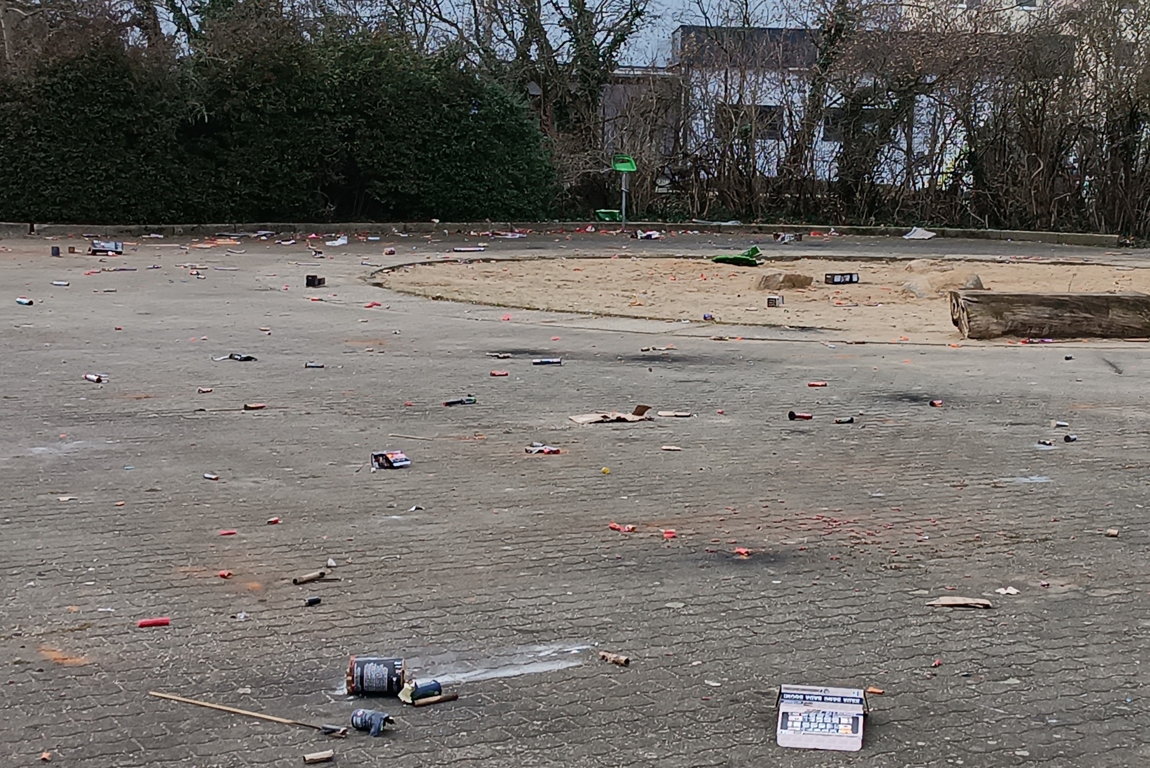 Feuerwerksreste auf einem Spielplatz. Foto: Thomas Köhler
