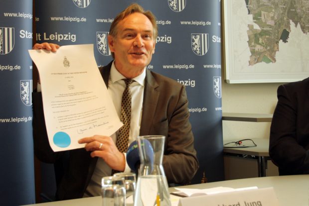 Wer will es ihm verdenken? Endlich ist der zähe Prozess der Leipziger Wasserwerke mit der Schweizer Großbank UBS in London zu Ende. Der Supreme Court hat endgültig festgestellt, dass die UBS keinen einzigen Grund von öffentlicher Wichtigkeit vorgebracht hat, um noch einmal eine Revision im Prozess zu erreichen. Das Urteil vom 14. Oktober 2017 gilt. Und OBM Burkhard Jung hält diesen endgültigen Spruch des Supreme Court mit berechtigtem Stolz in die Kamera.