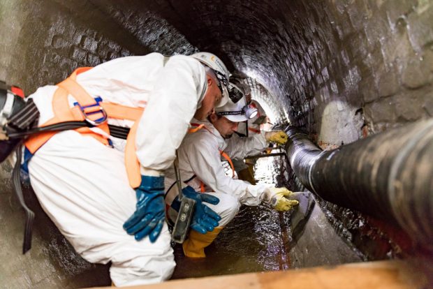 Von den Kanälen unter Leipzig haben rund 90 Kilometer eine Mindesthöhe von 130 Zentimeter. Das heißt: Diese Kanäle können händisch saniert werden. Die ausgebildeten Fachleute ziehen sich weiße Overalls an, Stiefel, Handschuhe und Helm – und dann wird der Kanal Stück für Stück wieder in Ordnung gebracht.