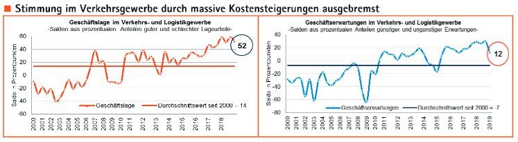 Was einen natürlich aufs Verkehrsgewerbe bringt, wo die Erwartungen ganz ähnlich in die Tiefe gestürzt sind. Und auch hier sind es nicht Umsatz und Auftragslage, die das Stimmungsbild eintrüben, betont die IHK, sondern die Sorge um Kraftstoffpreise und Mauterhöhungen. Und – auch hier: Man findet keine Fahrer mehr. Was ja nicht nur Transportunternehmen betrifft, sondern auch ÖPNV und Bahnunternehmen.