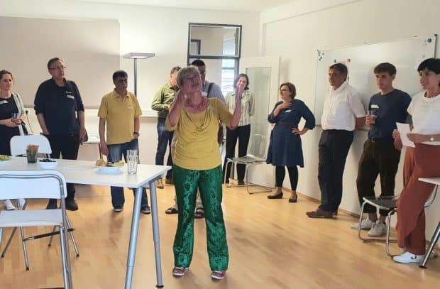 Danach war viel Freiraum für Gespräche und Austausch. Manche diskutierten darüber, wie sie sich gemeinsam in ihrer Gewerkschaft für die Verbesserung ihrer Arbeitsbedingungen einsetzen können. Auch die vielfach ausgebliebene staatliche Unterstützung in der Corona-Zeit war ein großes Thema. Der eine musste notgedrungen Hartz-IV beantragen, die andere hat nun mit Rückzahlungen zu tun, weil der blanke Lebensunterhalt in den Hilfsgeldern nicht berücksichtigt wurde.