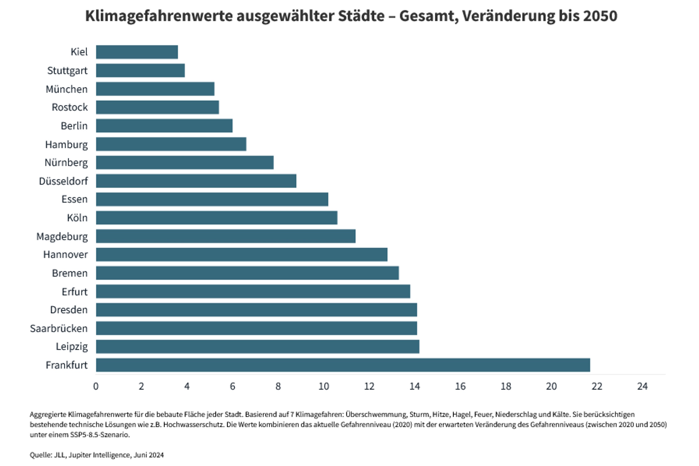 Der Artikel entspringt nicht der Feder grüner Politikerinnen und Politiker. Es handelt sich hierbei um die Bewertung von „Klimarisiken in deutschen Städten“ der Jones Lang LaSalle Incorporated (JLL), einem US-amerikanischen Dienstleistungs-, Beratungs- und Investmentmanagement-Unternehmen im Immobilienbereich.