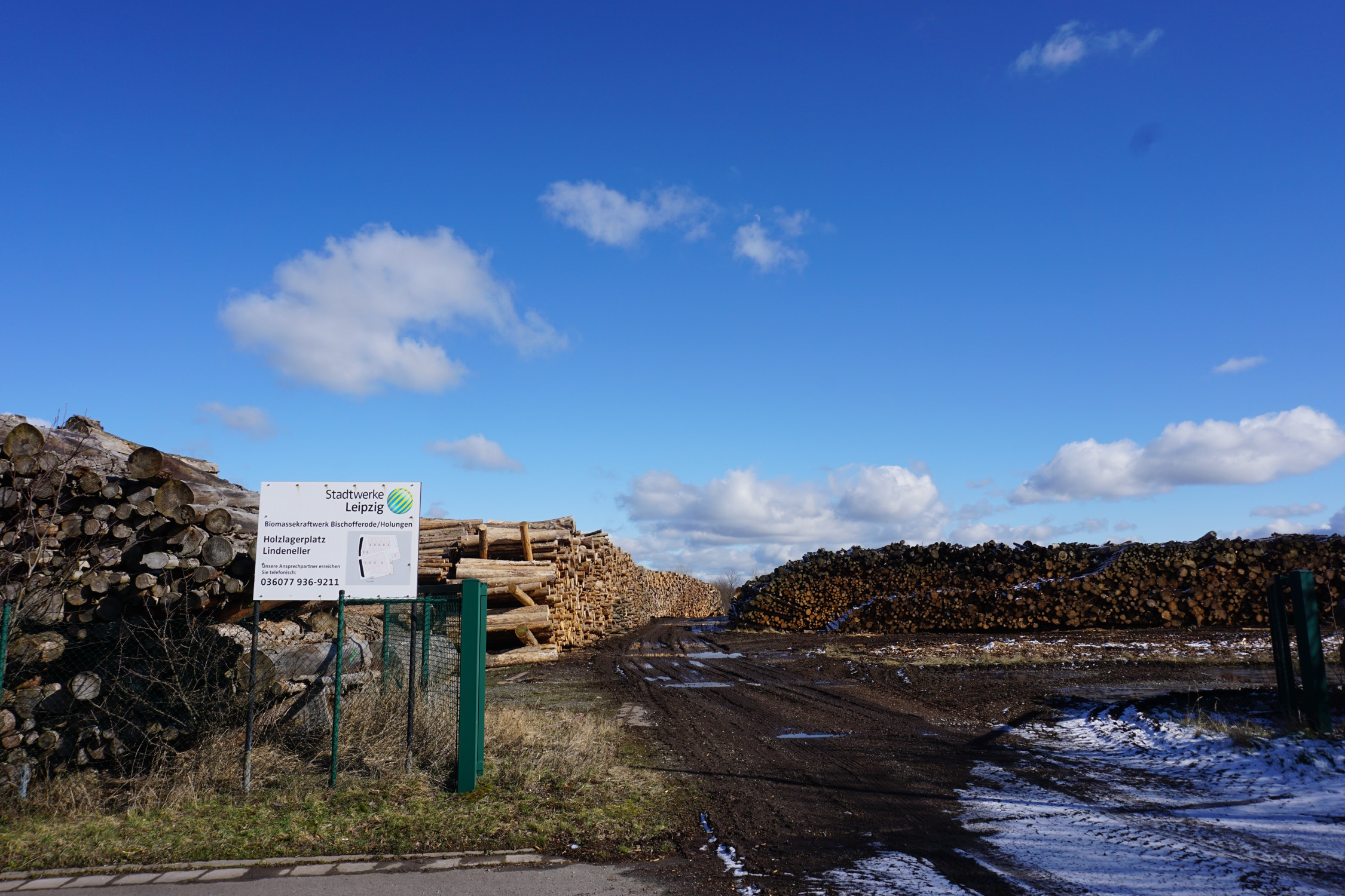 Der Holzlagerplatz Lindeneller beim Biomassekraftwerk Bischofferode. Foto: Jana Ballenthien/ROBIN WOOD